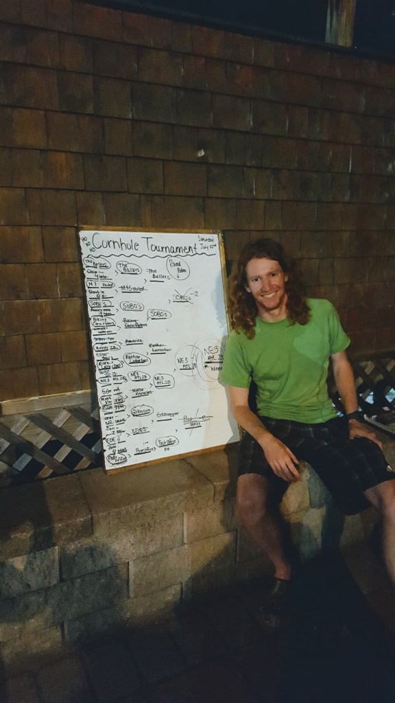 It just so happened that night, the Lodge was hosting a cornhole tournament. Myself and a so-far-not-trail-named guy in the tramily signed up, and we ended up winning second place! A very scandalous second place in fact, after the opposing team moved the boards while we were winning. C’est la vie, but the second prize ended up paying for our stay that night as well as for our breakfast in the morning.